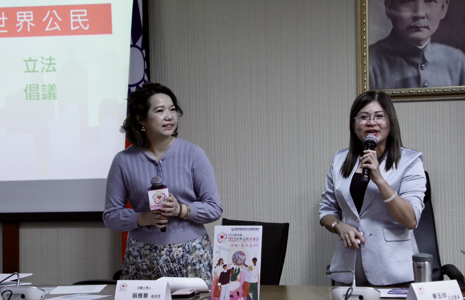 2.活動主理人翁雅蓁(左)特別感謝麥玉珍委員對世界公民理念和友善行動計畫的全力支持。圖/國會與國家產業全球發展促進會(CGA)提供