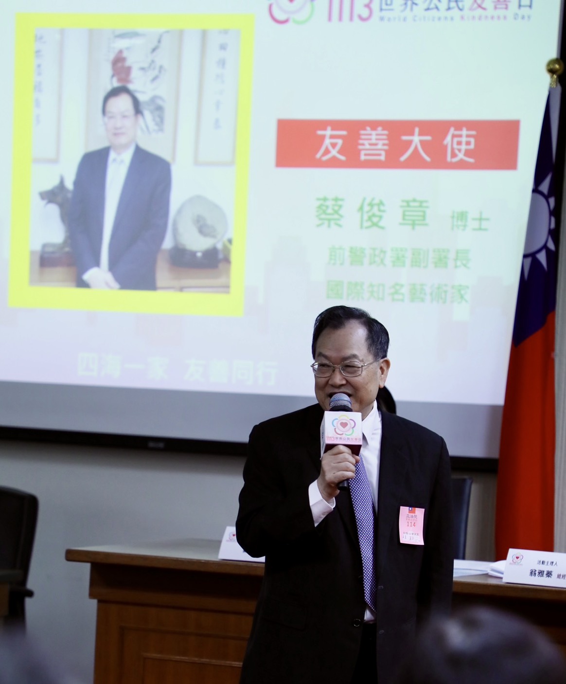 3-2. 友善大使蔡俊章博士分享經驗,呼籲以日常善行、理性資訊與社會關懷共同築起更安全、更溫暖的友善社會。圖/國會與國家產業全球發展促進會(CGA)提供