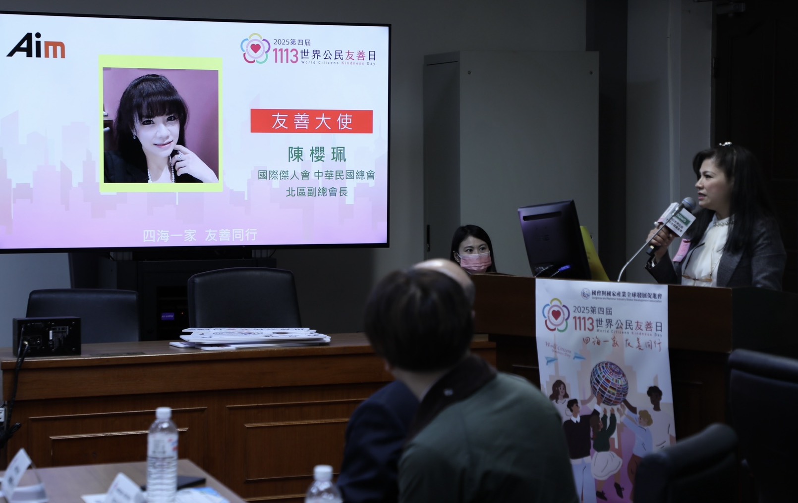3-3. 友善大使陳櫻珮在活動中致詞,感謝主辦單位多年推動善行,並呼籲以行動擴散友善力量,期盼善念從個人延伸到社會,使台灣成為世界看見的友善典範。圖/國會與國家產業全球發展促進會(CGA)提供