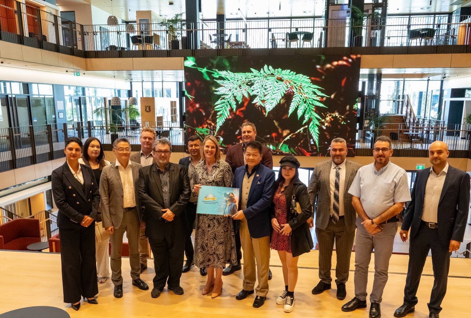 Aim國家產業發展集團代表團赴澳洲期間,前往當地高等教育校園進行參訪交流。雙方就國際人才培育、產學連結及未來跨域合作方向進行交流,展現澳洲教育機構對深化國際合作與接軌產業發展的高度重視,也為台澳在教育、產業與城市發展之間的長期合作拓展更多可能性。圖/Aim國家產業發展集團提供