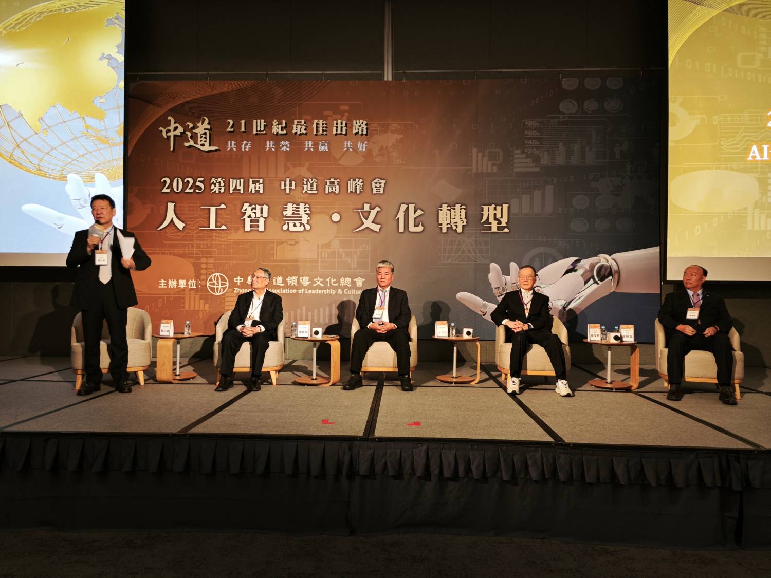 在鳳凰颱風減弱、天光轉晴的祝福下,「2025第四屆中道高峰會」於台北國際會議中心盛大舉行,海內外嘉賓不畏風雨齊聚一堂。今年以「人工智慧˙文化轉型」為主題,探討AI高速發展下,人類如何透過文化、倫理與中道智慧,在科技與文明交界處找回平衡與方向。