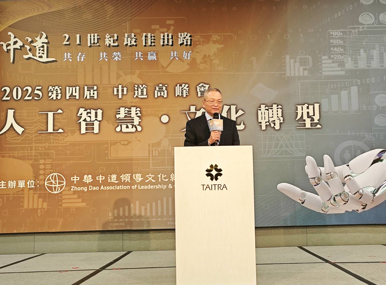 2025第四屆中道高峰會開場由中華中道領導文化總會陳樹理事長致詞,談及 AI 時代的文化挑戰與中道精神的重要性,為大會揭開深具格局的思想序章。圖/中華中道領導文化總會提供