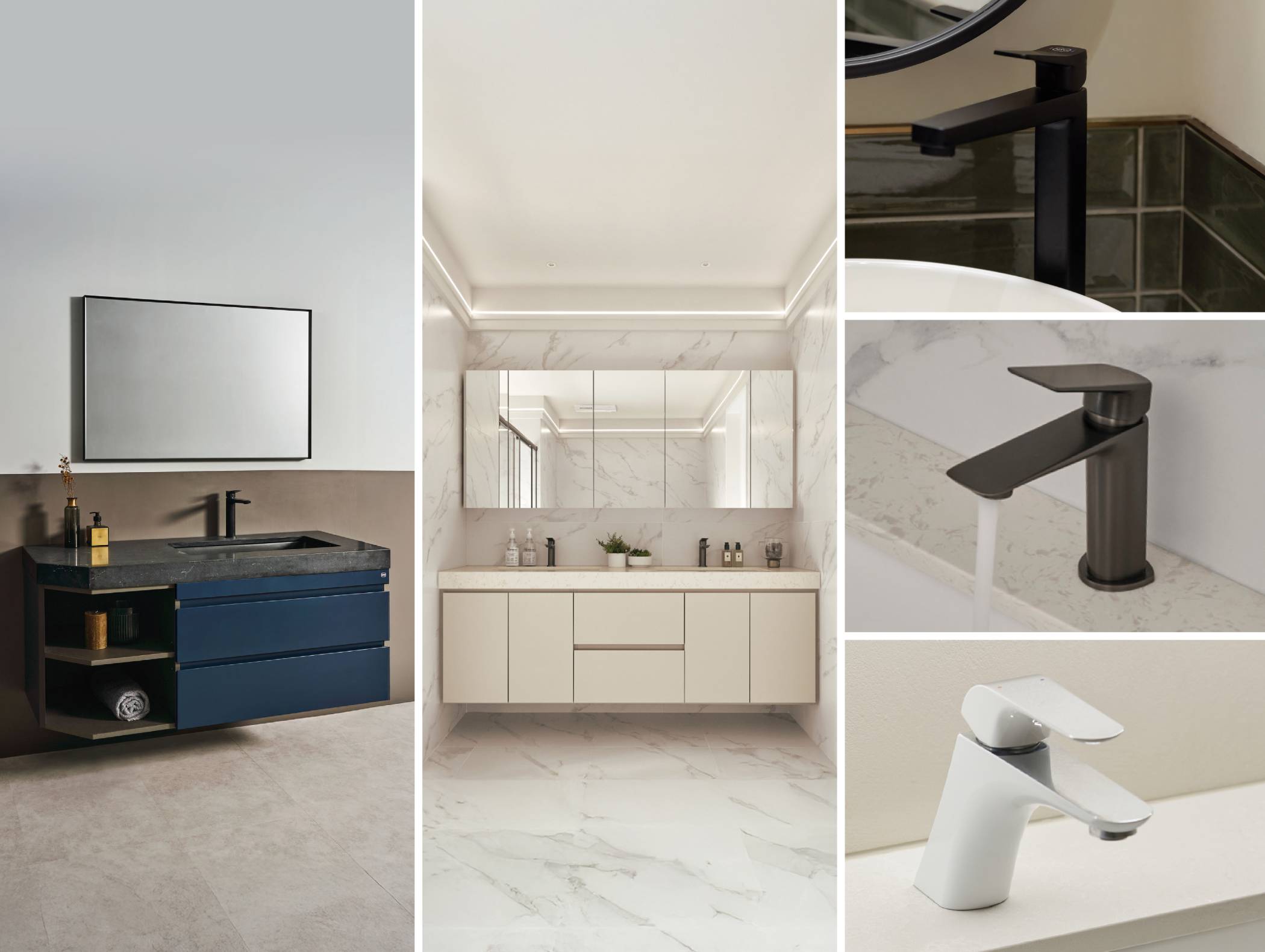 因市面上衛浴產品多以規格品為主,收納設計、風格選擇相對有限,消費者多難以挑到符合喜好的款式,最終只能妥協於現有選項。對此,OVO 京典衛浴指出,為協助顧客實現理想衛浴,品牌延伸推出多色系龍頭、櫃體板材與檯面石材等搭配,並提供「客製化服務」,協助依空間條件給予臉盆樣式、櫃體風格及收納結構等建議。