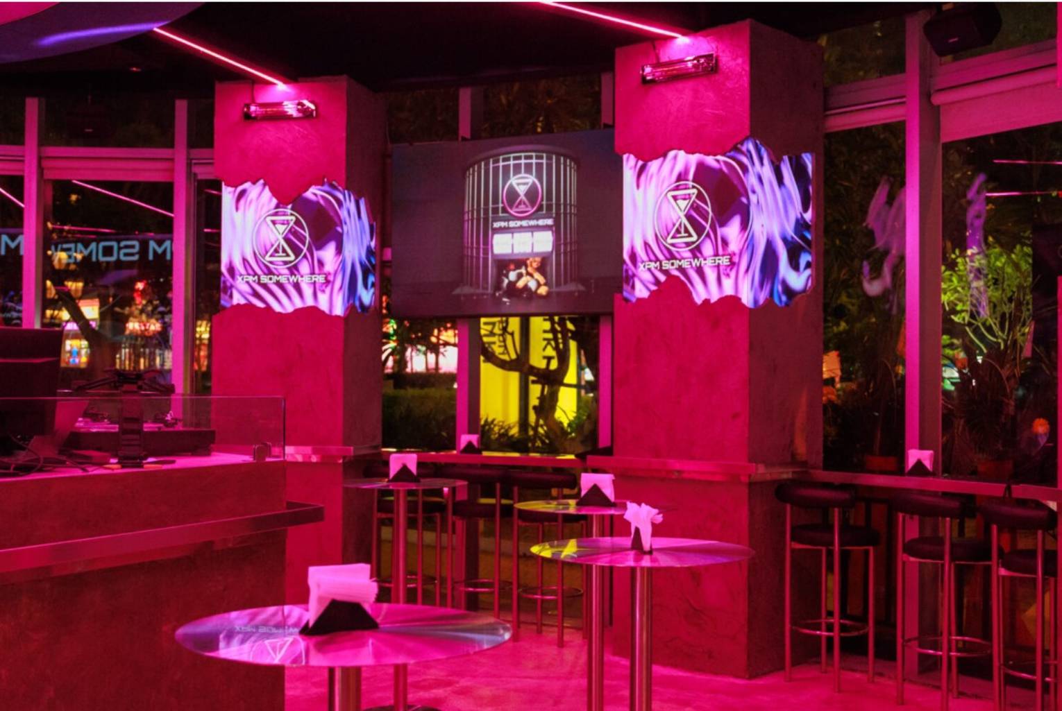 裝潢從破壞感的工業風到店內空間結合大面積 LED 與 VJ 影像,每一面LED 強隨著時間與曲風不斷切換,讓DJ 在放歌時更能營造沉浸氛圍。