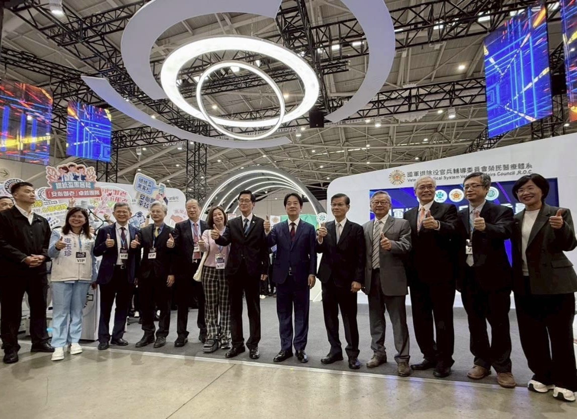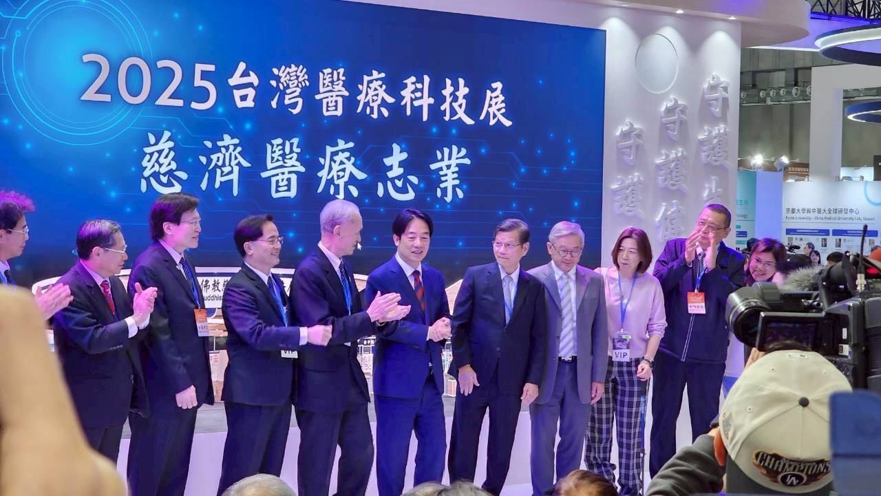 賴清德總統在台灣醫療科技展慈濟醫療志業展區,肯定台灣在人道醫療與科技創新的卓越成就;麥玉珍委員(右一)亦到場了解慈濟醫療志業在科技與公益整合上的成果。圖/麥玉珍國會辦公室提供