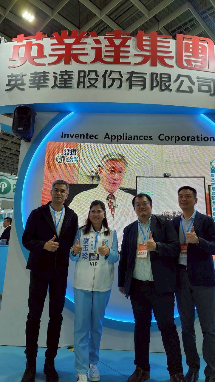 麥玉珍委員於英業達展區與團隊合影,肯定企業在醫療科技領域的投入與突破,期待共同提升台灣國際競爭力。圖/麥玉珍國會辦公室提供