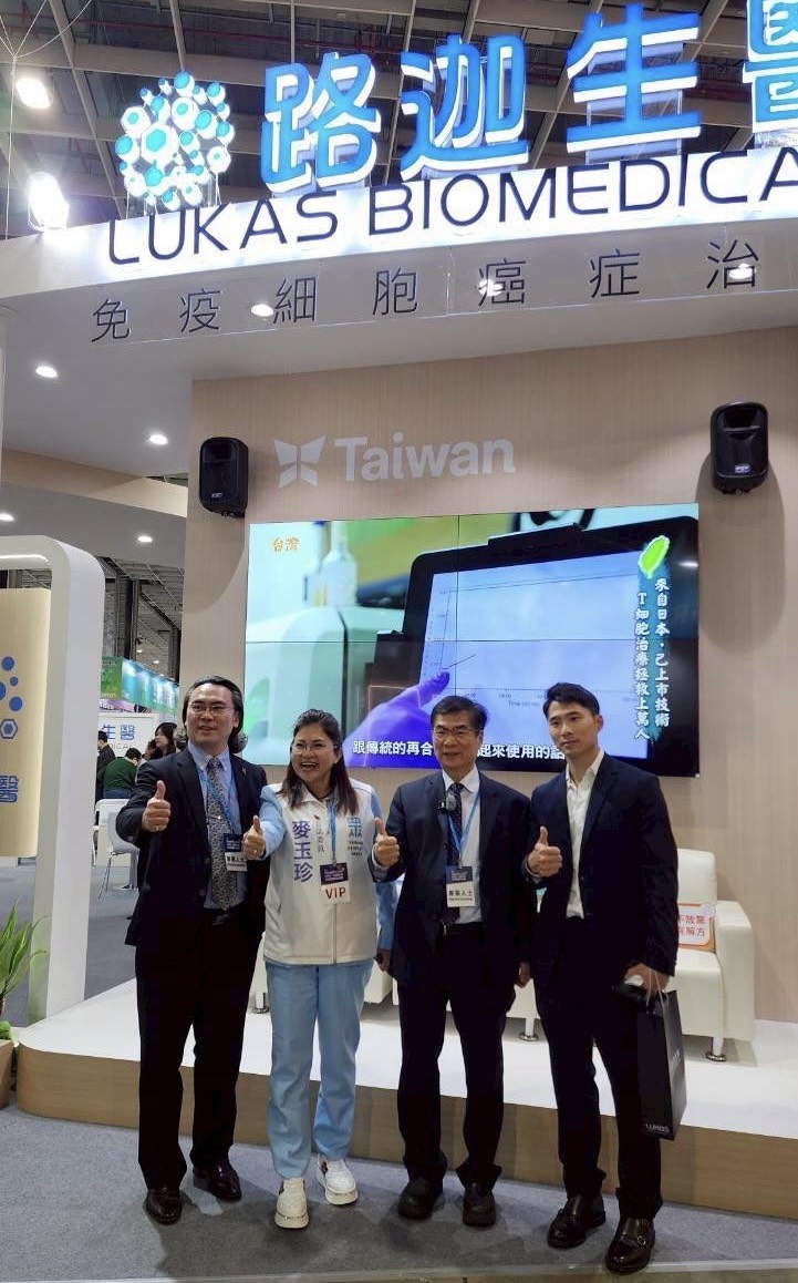 麥玉珍委員(左二)參訪路迦生醫展區,關心免疫細胞療法等精準醫療技術的研發與應用,期待新技術為民眾帶來更安全有效的治療選擇。圖/麥玉珍國會辦公室提供