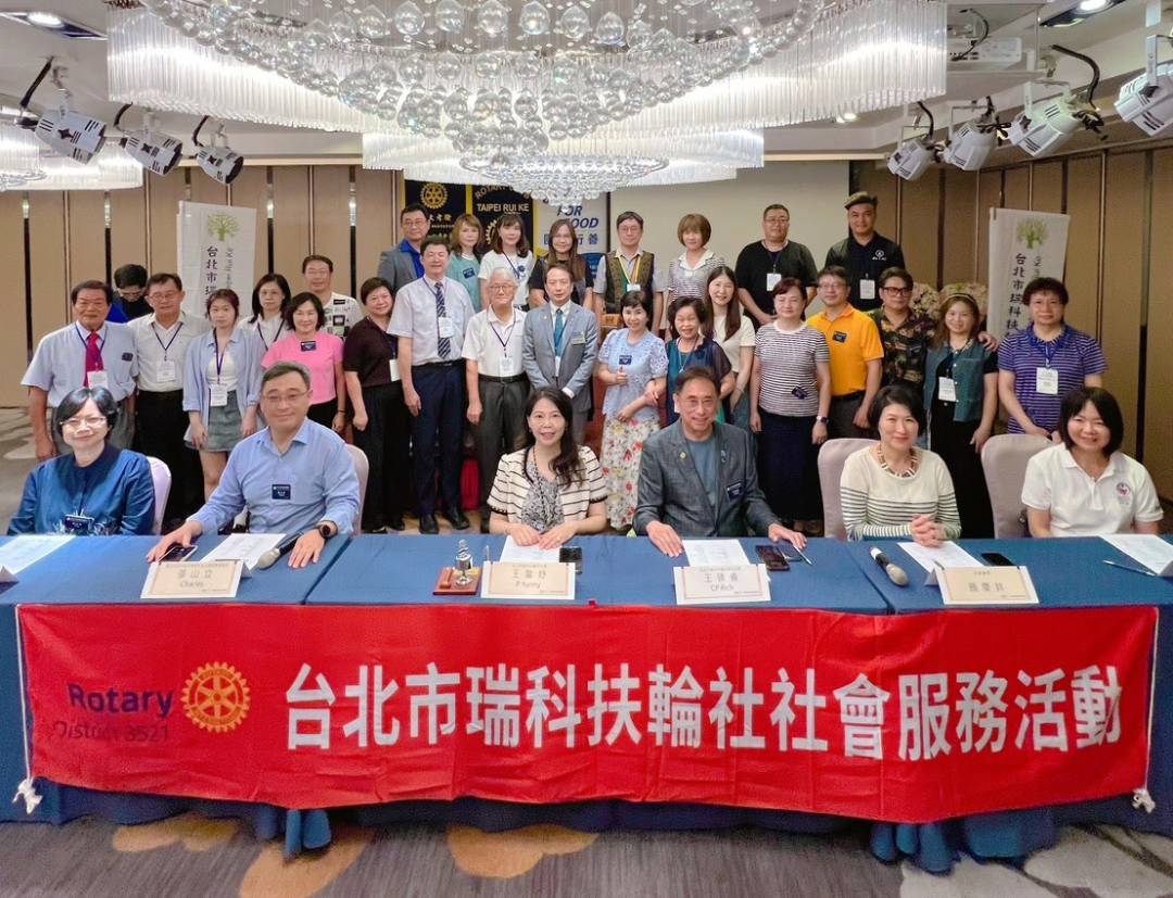 台北市瑞科扶輪社社長王馨妤(前排左三)熱心公益,號召社友及跨界夥伴共同投入公益,體現扶輪「團結行善」精神,為偏鄉教育注入暖流。圖/上準工程公司提供