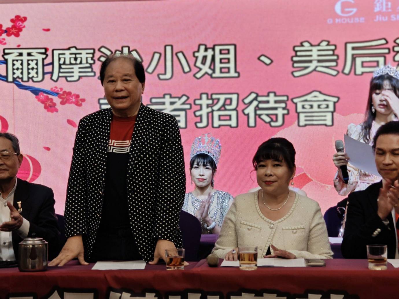 大會主席林東雄(左立)致詞指出,活動結合美麗與產業精神,期盼透過選美平台推動女性自信與品牌文化共榮,讓台灣之美在國際舞台綻放光采。圖/冒繼善攝影提供