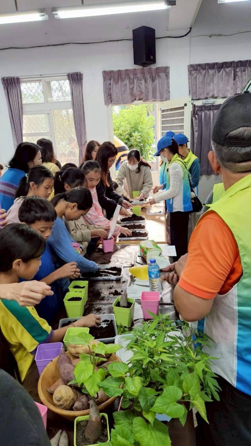 台灣甘藷產業策略聯盟藉由活動中走進部落校園,帶領孩子親手體驗地瓜盆栽教學與食農學習,從覆土、澆水到記錄成長歷程,讓孩子在生動互動中認識土地、文化與食物。圖/台灣甘藷產業策略聯盟提供