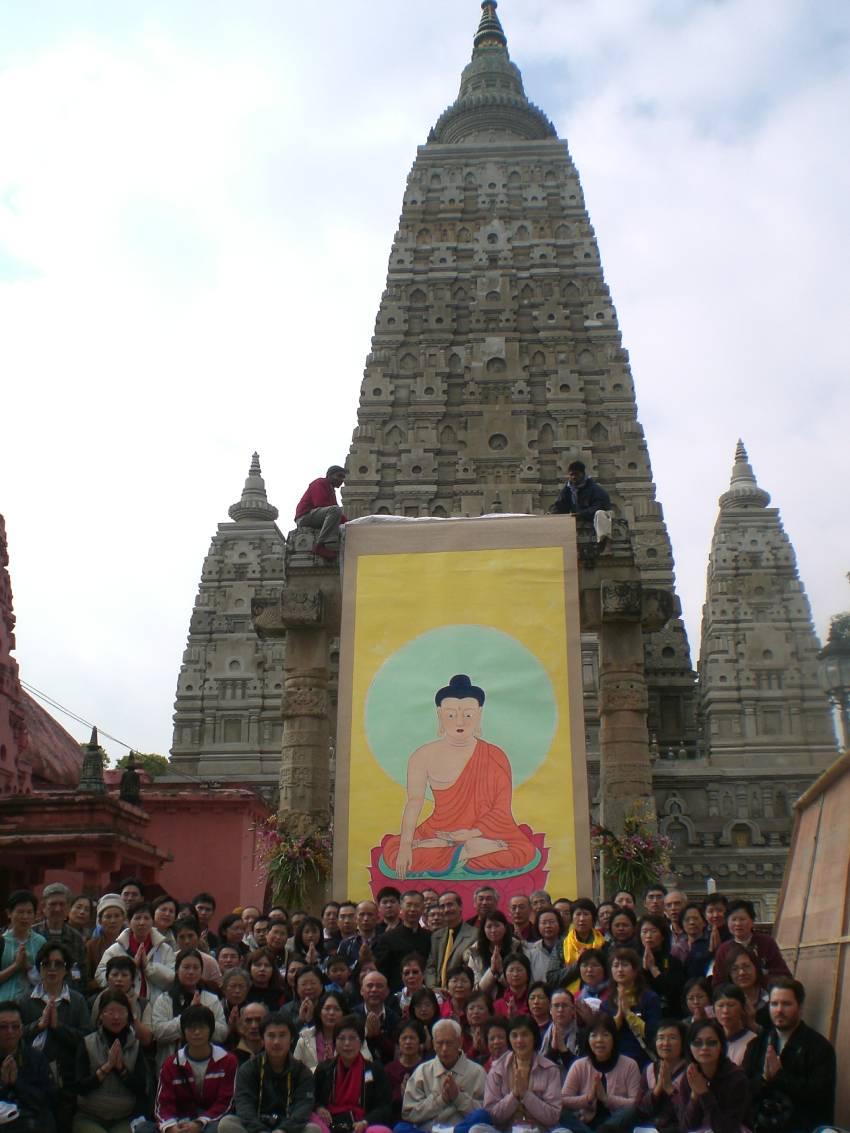 2008年洪禪師於菩提伽耶主持國際禪七,並繪製巨幅成道佛。圖/南玥覺性藝術文化基金會提供