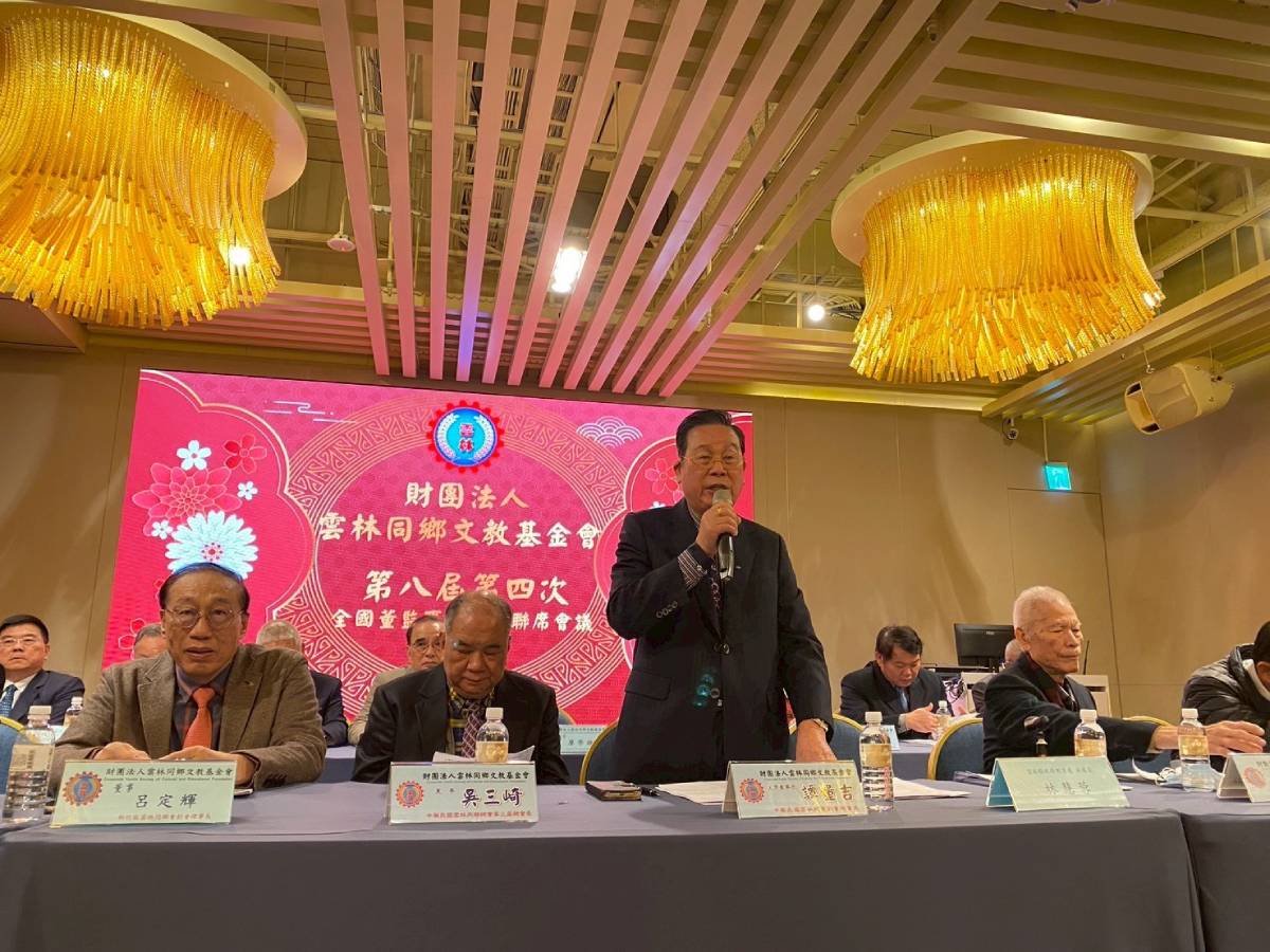 財團法人雲林同鄉文教基金會近日(2026年1月11日)假新竹市晶宴會館御豐館,召開「第八屆第四次董監事、顧問聯席會議」,邀集全國各地雲林同鄉會理事長、歷屆總會長、董監事、顧問及鄉親先進齊聚一堂,共同關心基金會會務推展與文教公益發展方向,現場氣氛熱絡溫馨。
